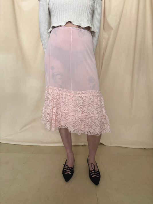 Pink Slip Skirt with Lace Trim