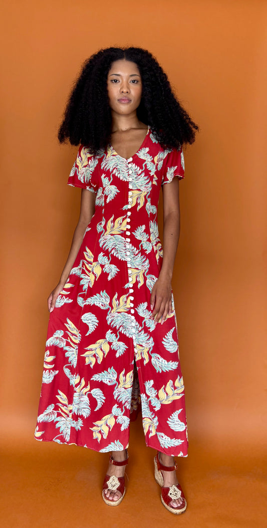Y2K red ruffle halter dress