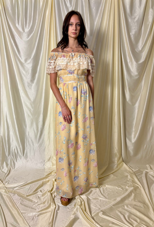 70s butter yellow prairie dress