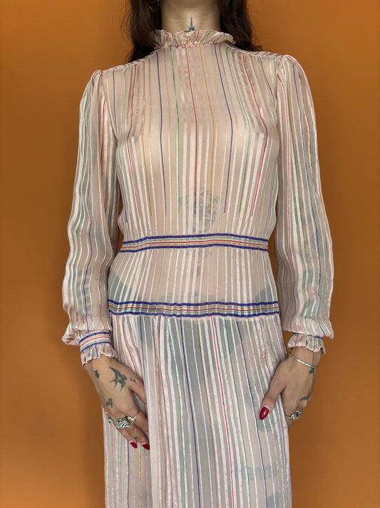 70s rose coloured maxi dress with bishop sleeves