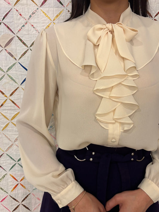Alberta Ferretti Sheer Silk Ruffle Blouse