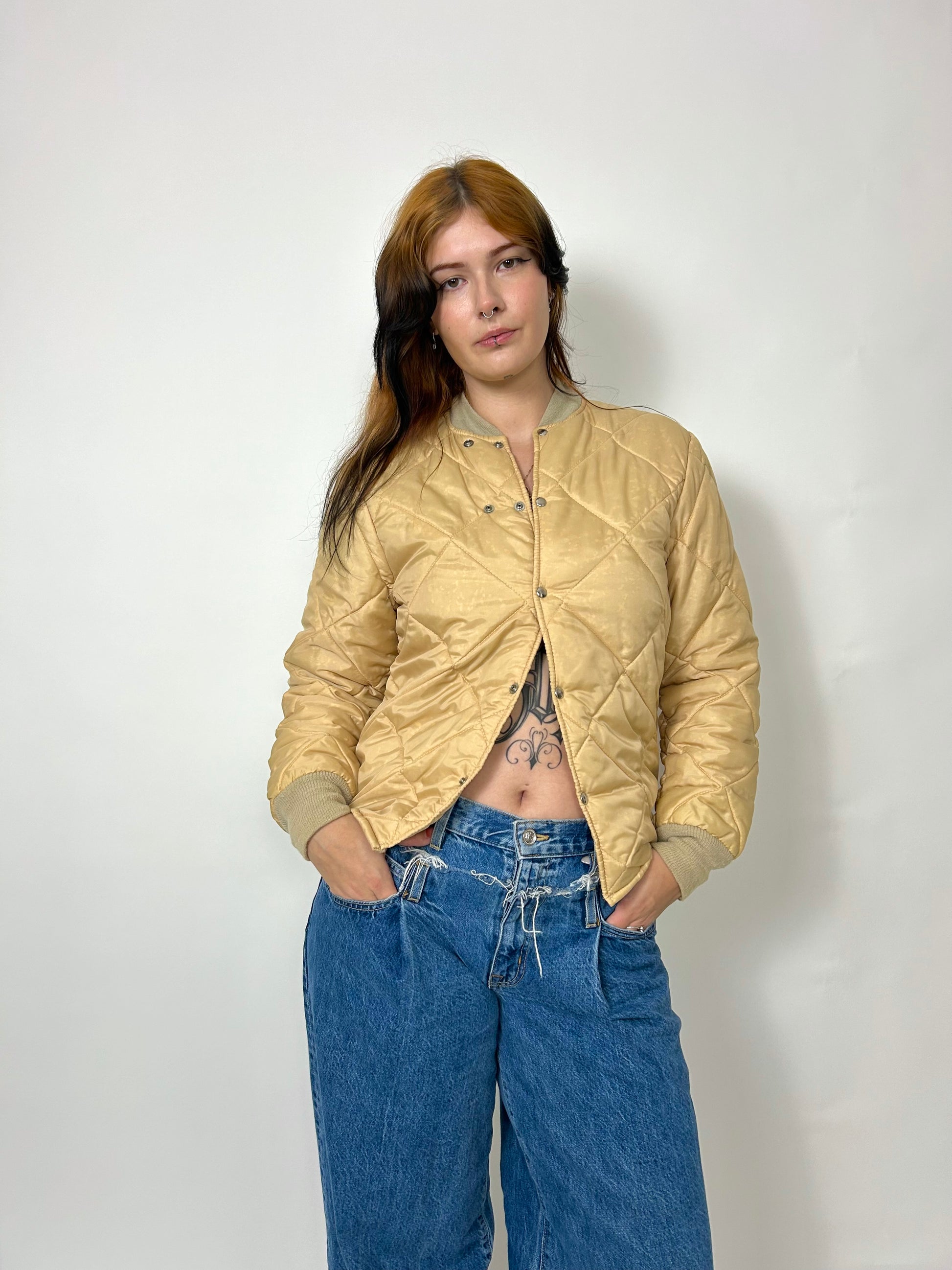Classic quilted workwear jacket with snap buttons. Tagged small