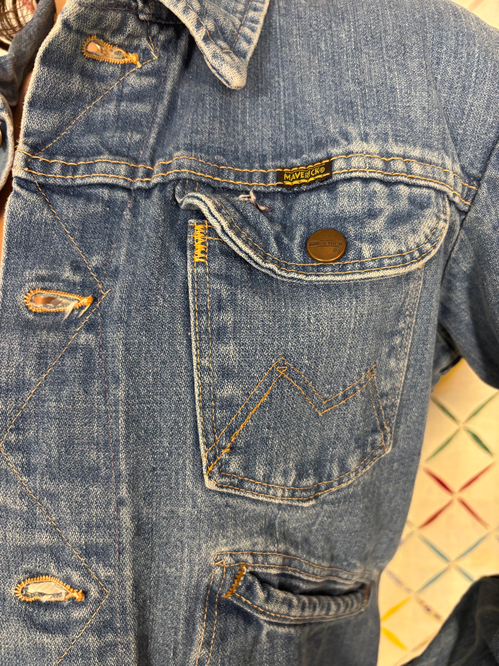 Classic 70s Maverick denim jacket. Tagged a 40, fits small/medium