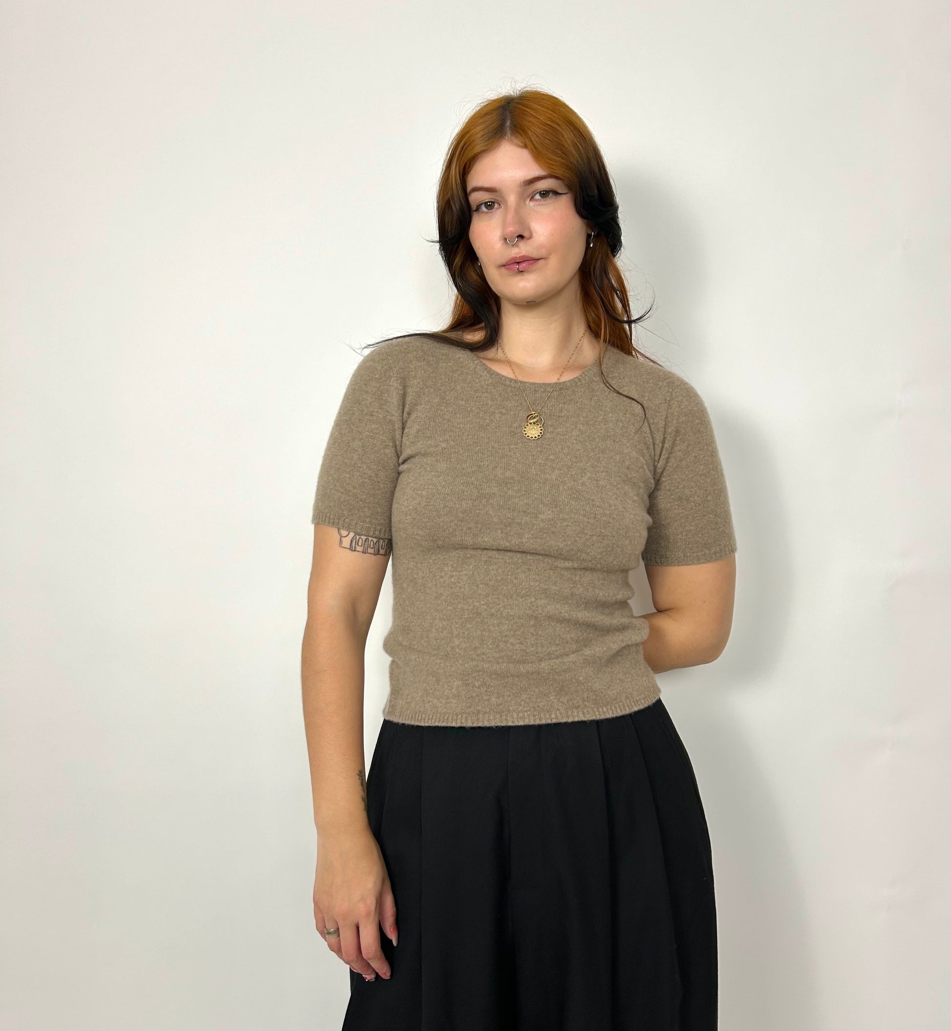 Super soft Italian cashmere sweater tee in a great neutral taupe.