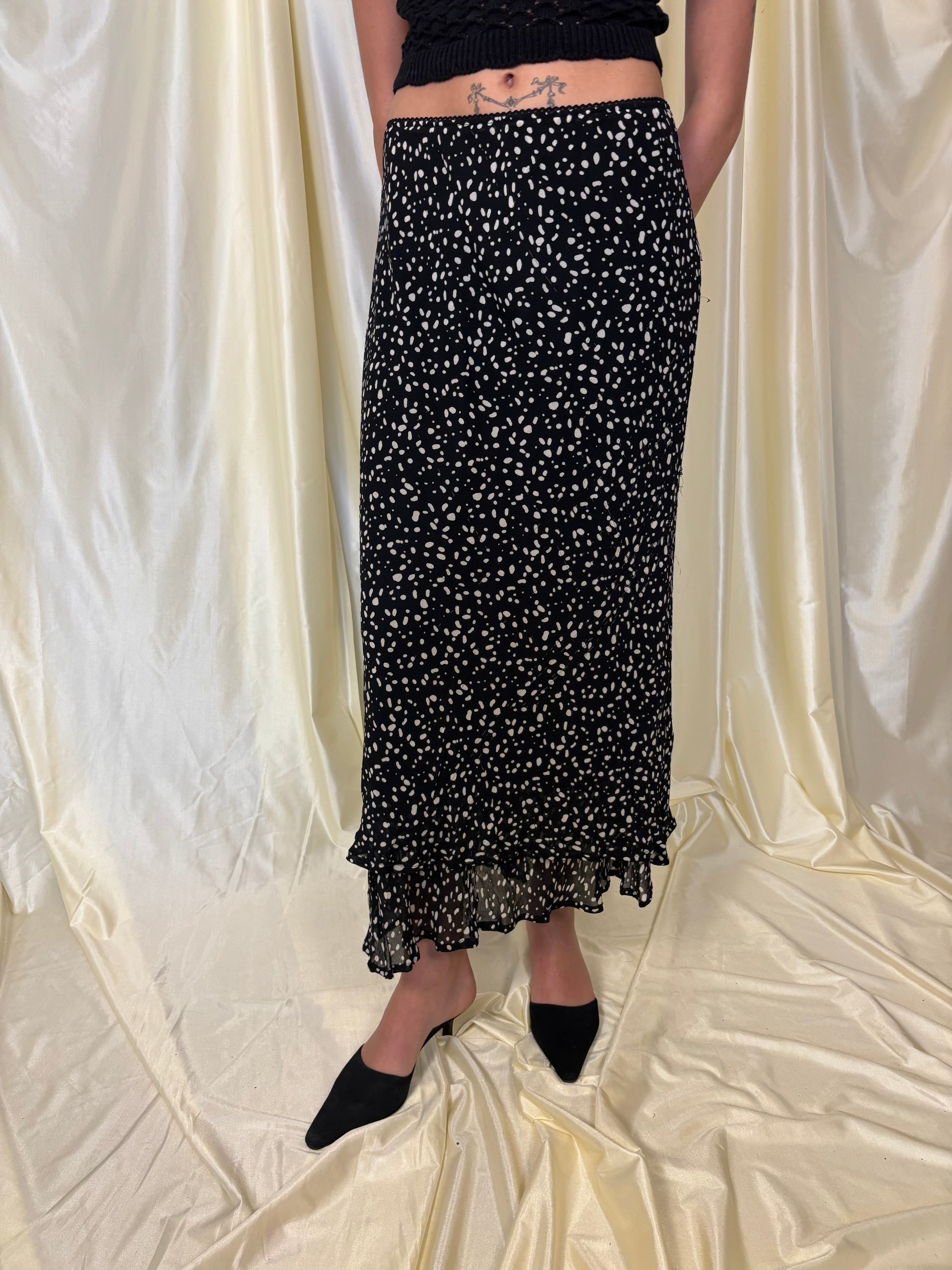 Cute Y2K maxi skirt with sheer overlay and ruffle hem. Stretchy waist!